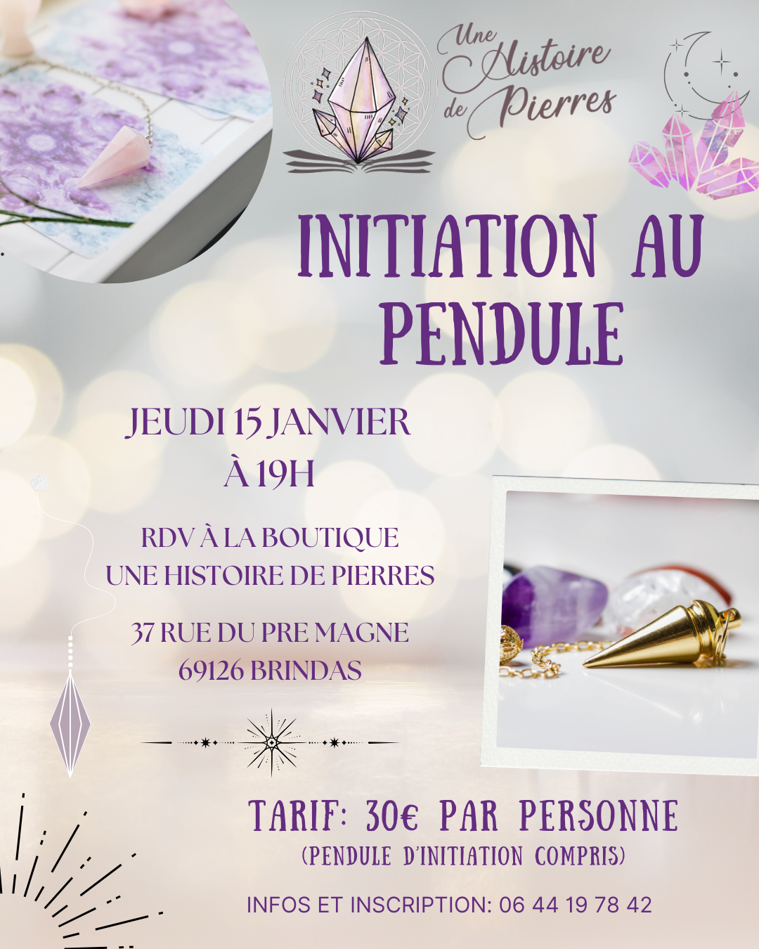 Un pendule d’initiation est inclus dans le tarif