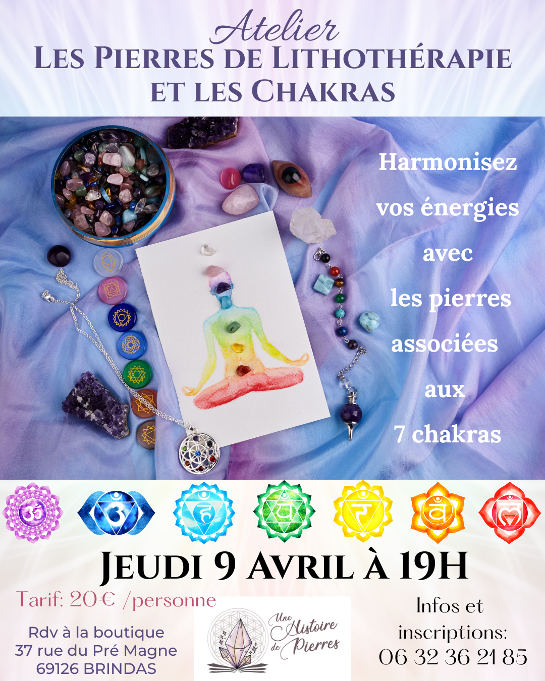 Je vous invite à partager un moment de découverte et de bien-être autour des chakras et de la lithothérapie, lors d’un atelier chaleureux et accessible à tous.