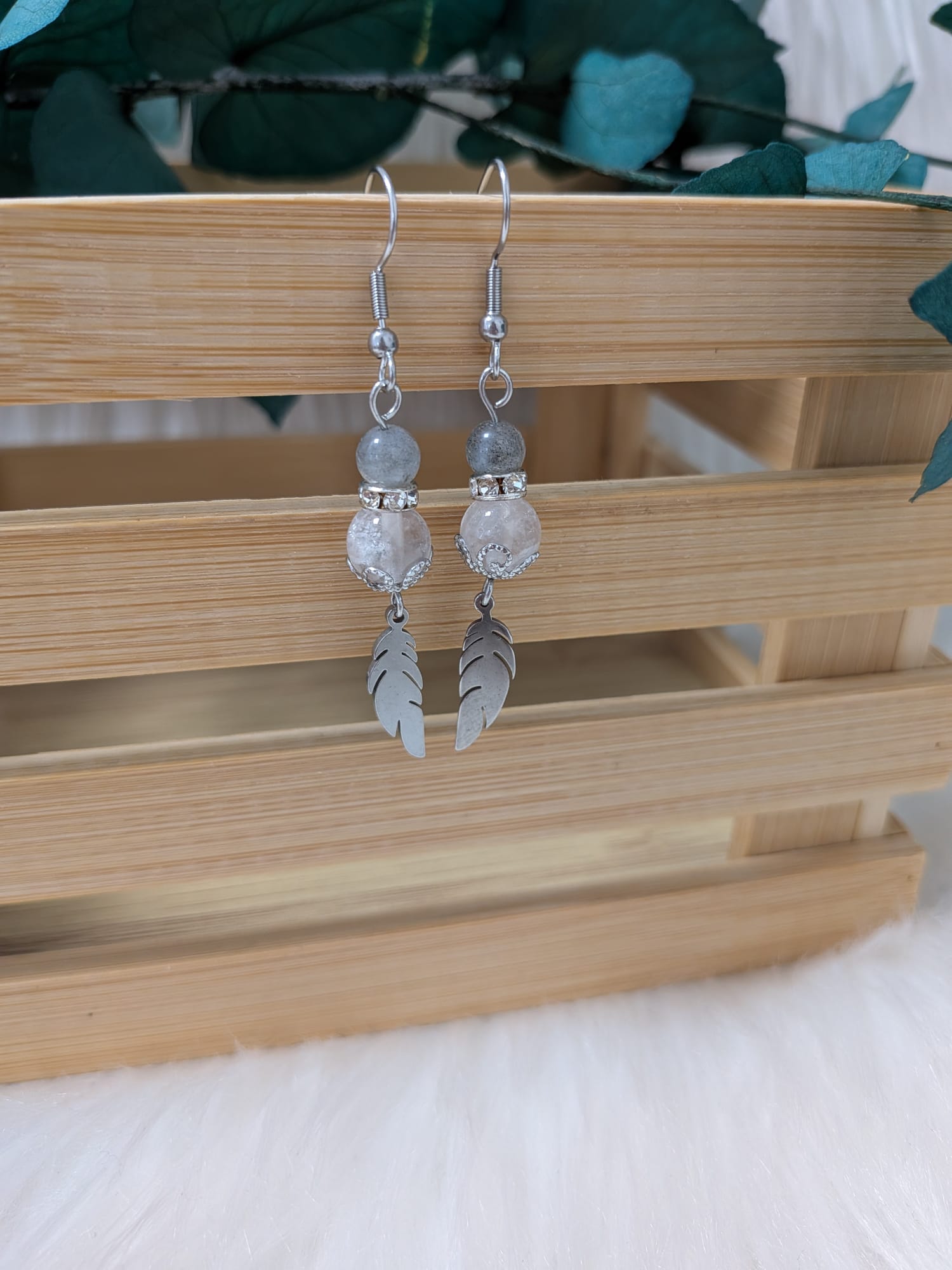 Ces boucles d’oreilles associent la puissance protectrice de la Labradorite à la douceur apaisante du Quartz rose, sublimées par une délicate plume, symbole de légèreté et de liberté.