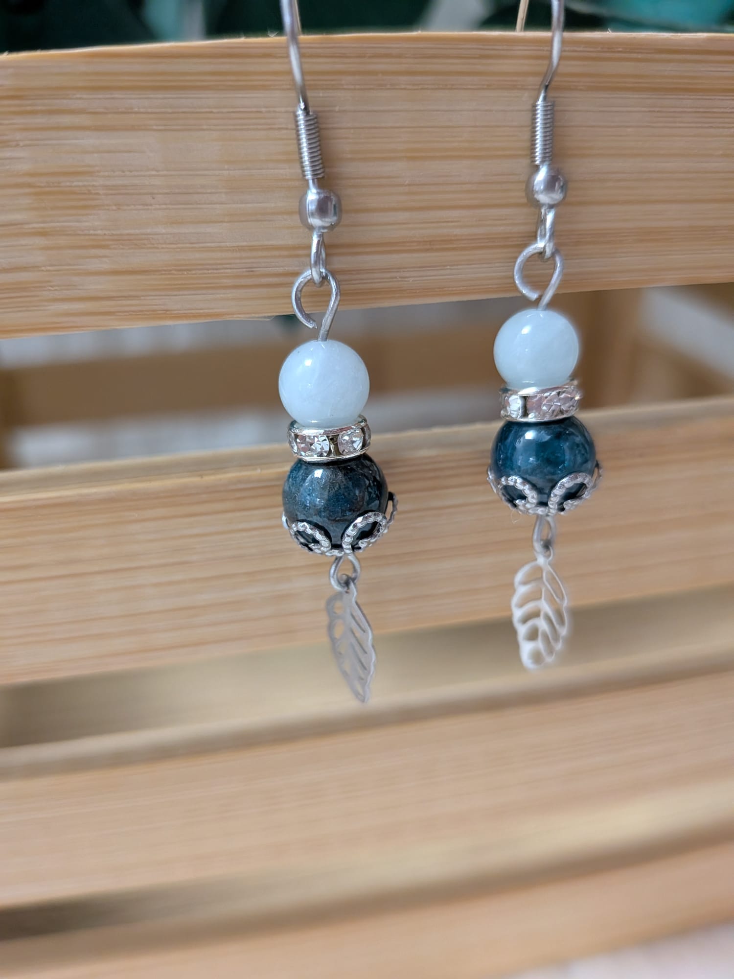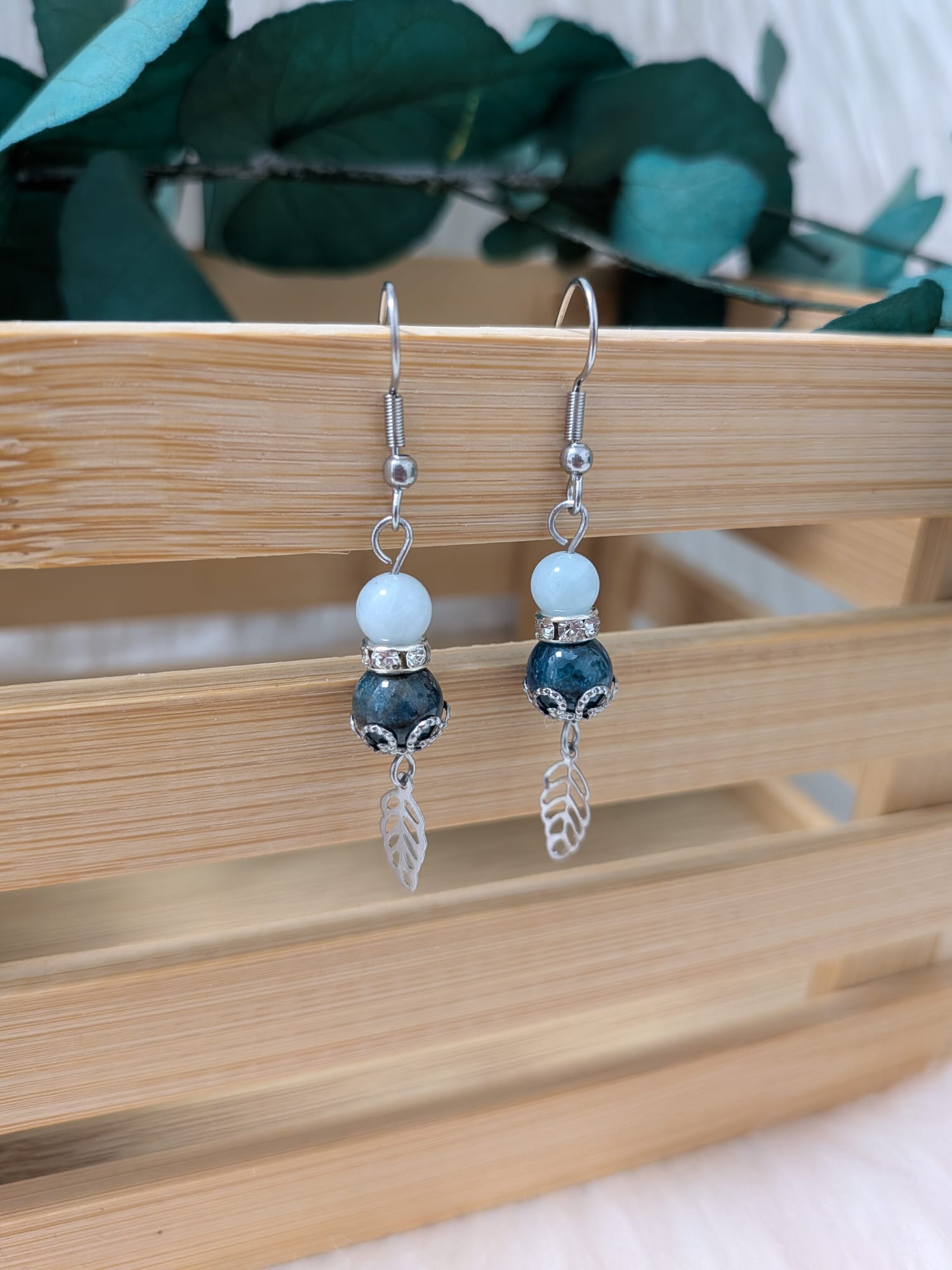 Ces boucles d’oreilles associent la fraîcheur de l’Aigue-marine à l’énergie stimulante de l’Apatite bleue, sublimées par de délicates feuilles en acier inoxydable, symbole de renouveau et d’harmonie.